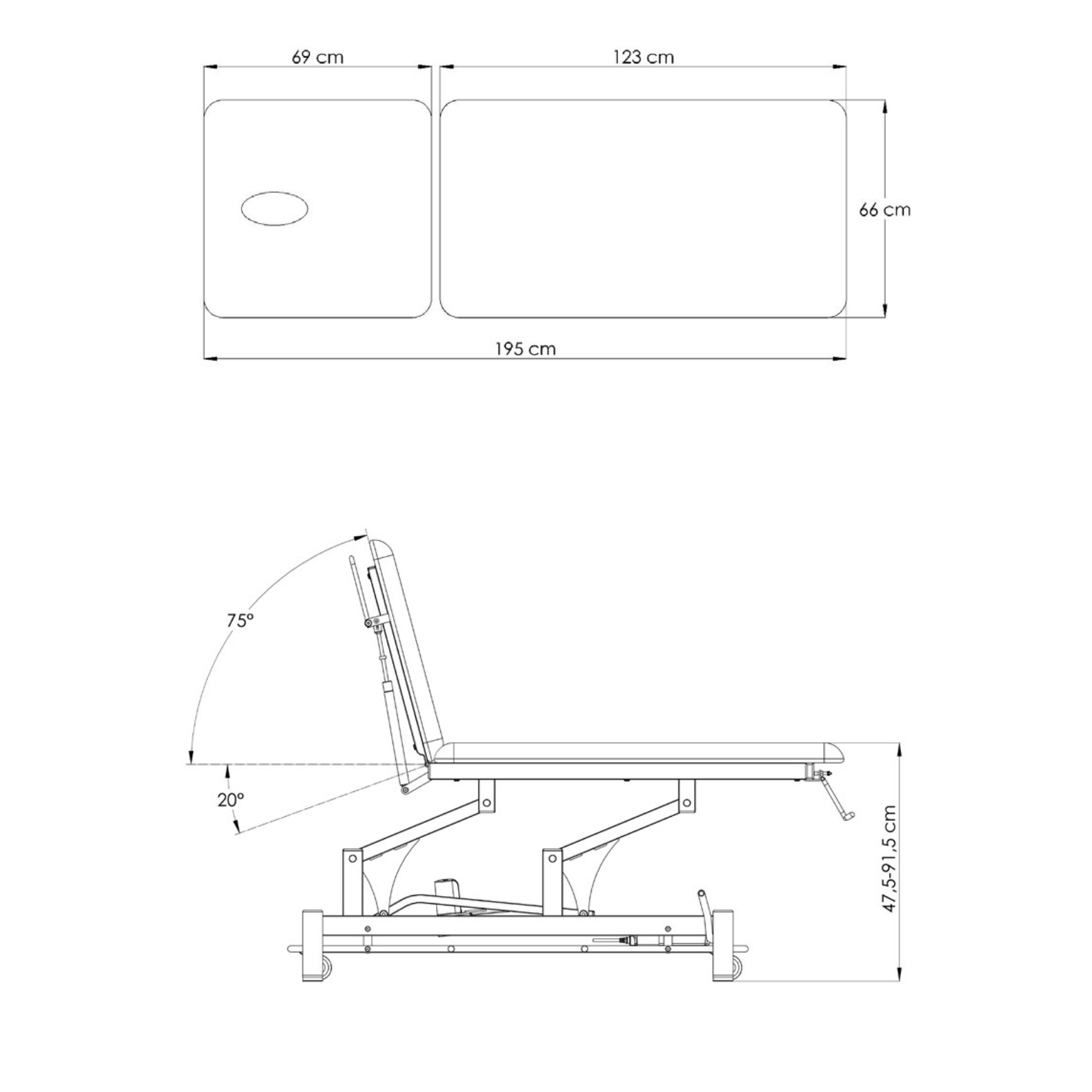 Inclinación del respaldo de -20º a +75º mediante pistón de gas.