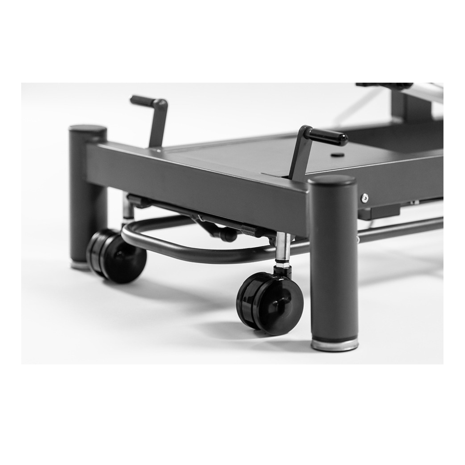 Sistema de 4 ruedas grandes retráctiles para facilitar el movimiento.