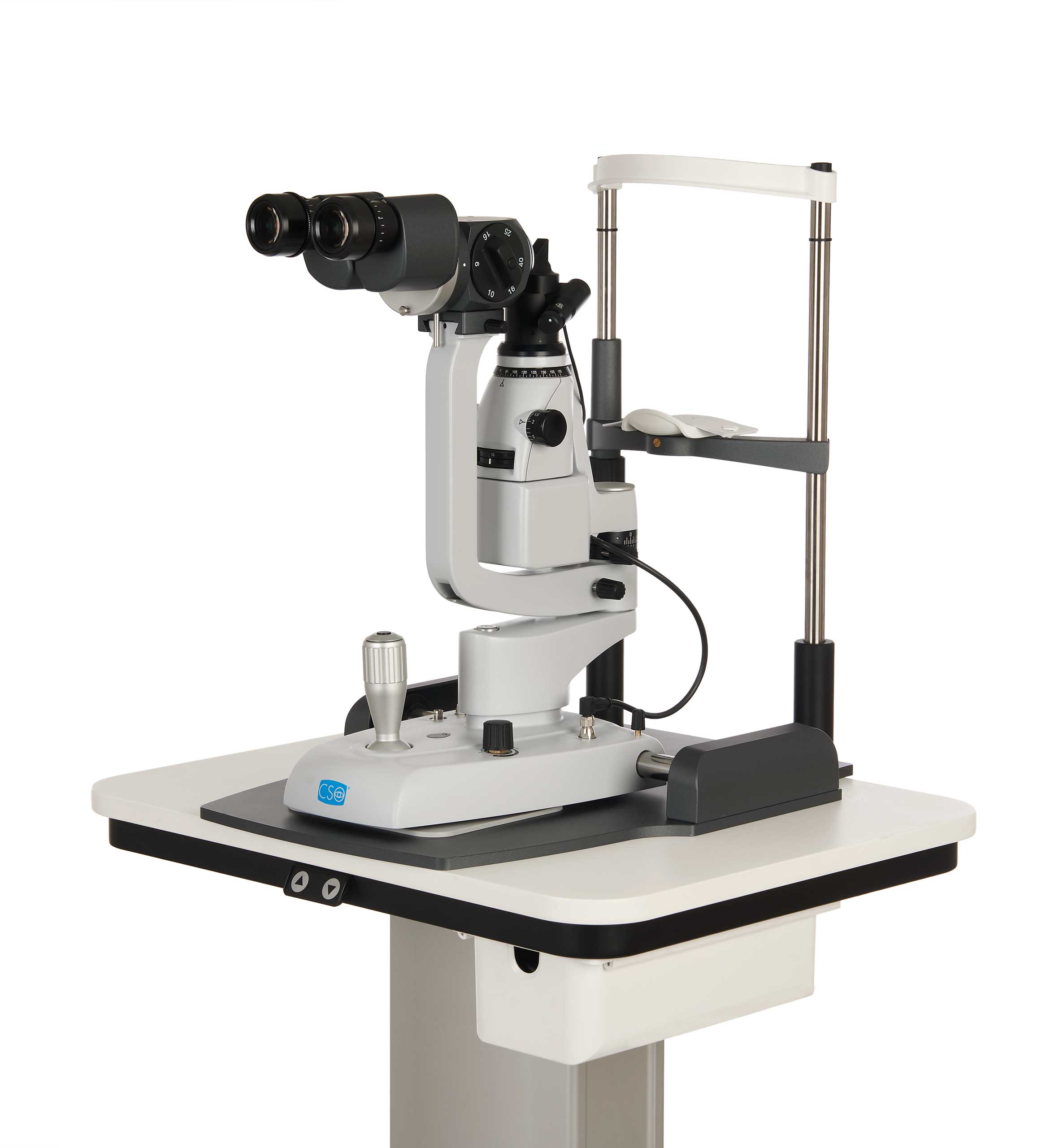 La CSO SL 9800 es una lámpara de hendidura de alta gama. Se ha diseñado bajo los más estrictos estándares europeos de calidad. Este equipo combina una ergonomía avanzada con una calidad óptica superior. Además, sus piezas mecánicas de precisión aseguran una experiencia inigualable durante el examen clínico.
